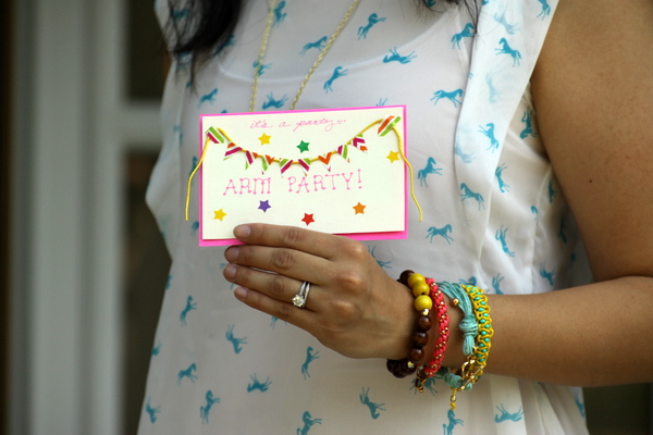 I love swaps because they are a great way to get some fun things, send a present to a new friend, and meet other bloggers!  I love meeting new bloggers like nobody’s business, y’all.  The Summer Time Arm Party Swap hosted by Much Love, Illy and Yellow Heart Art was such a genius idea for a swap since arm parties are HUGE in the fashion world.  Or is it just in the blogger fashion world?  Haha.  Anyhow, I was paired up with the adorable Bethany of Underscore Bethany and boy is she talented.  Look at what she sent me!