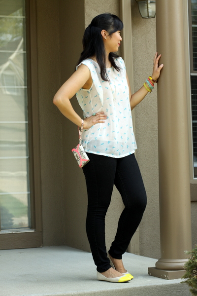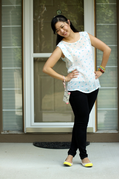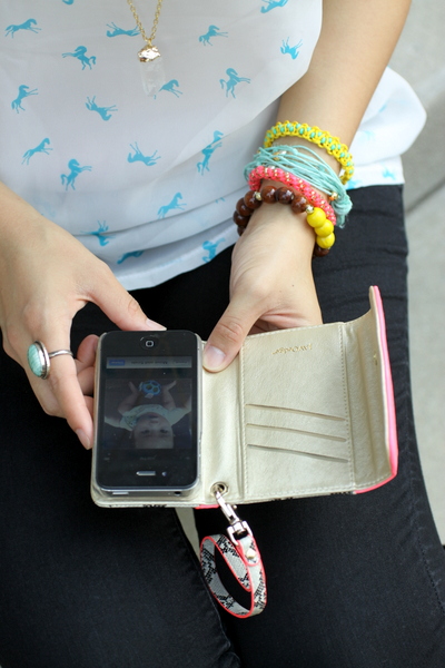 Top: Francesca’s | Pants: Old Navy | Flats: Old Navy {similar} | Necklace: Elladolce | Bracelets c/o Arm Party Swap partner Underscore Bethany | iPhone wallet case c/o JAVOedge (take 15% off your order with code SANDy15)