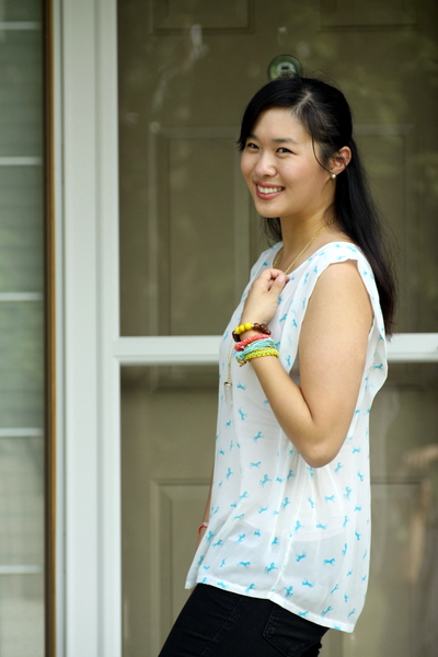 I couldn’t help but together an outfit that has the same pops of colors as the ones in the bracelet (mint/turquoise, yellow, and pink)!  I’d also just like to say that I totally pattern mixed here… horse print (literally) and snakeskin, bam!  I’m so happy I discovered pattern mixing because I think I’ll be doing it until the end of time, there’s no stopping this girl.
