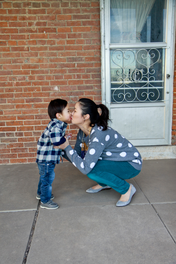 Every weekday morning as we get everyone ready to go out the door, and Daddy takes Austin to daycare, Austin asks me for a hug and a kiss.  And then I go and hug and kiss and Daddy and Austin asks for ANOTHER hug and a kiss.  It melts my heart each morning and makes me not want to leave him to go to work.  His kisses are the absolute best and I’m soaking them as long as he’ll give them to me.  I imagine that once he is 18 years old, he may not want to kiss his Mama anymore, but hopefully no sooner than that!  😉
