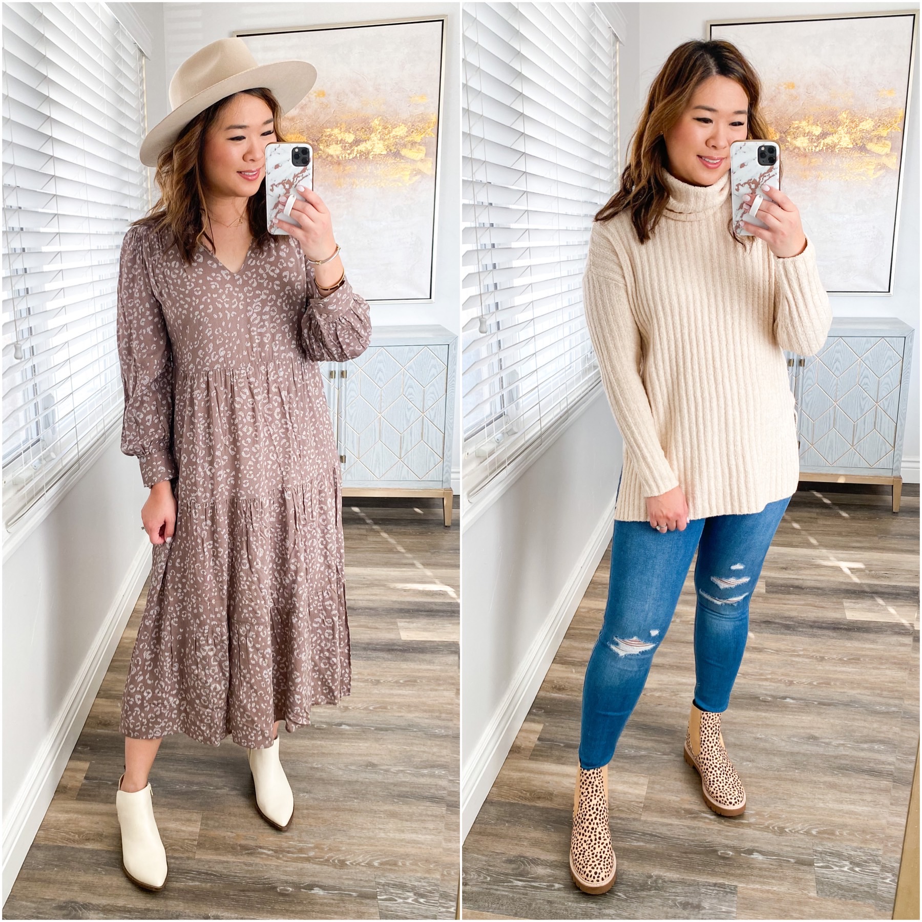 Left Outfit: Dress (S) // Booties (TTS) // Hat