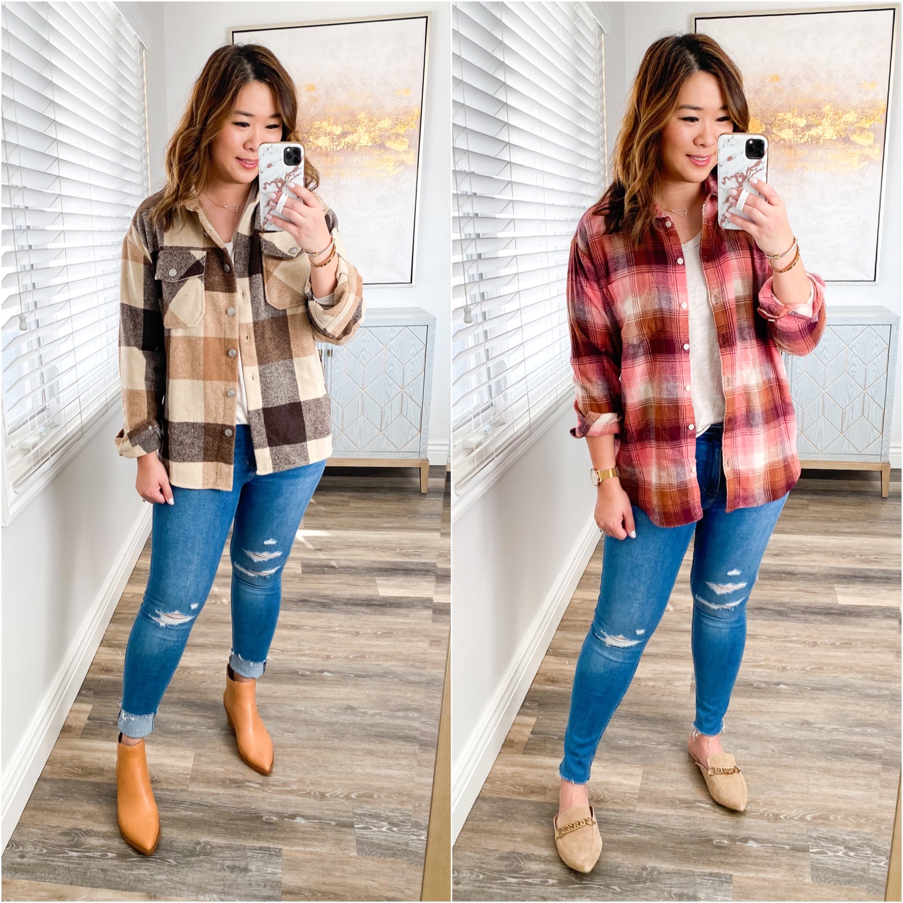 Left Outfit: Shirt Jacket (S) // Jeans (6) // Booties (TTS)