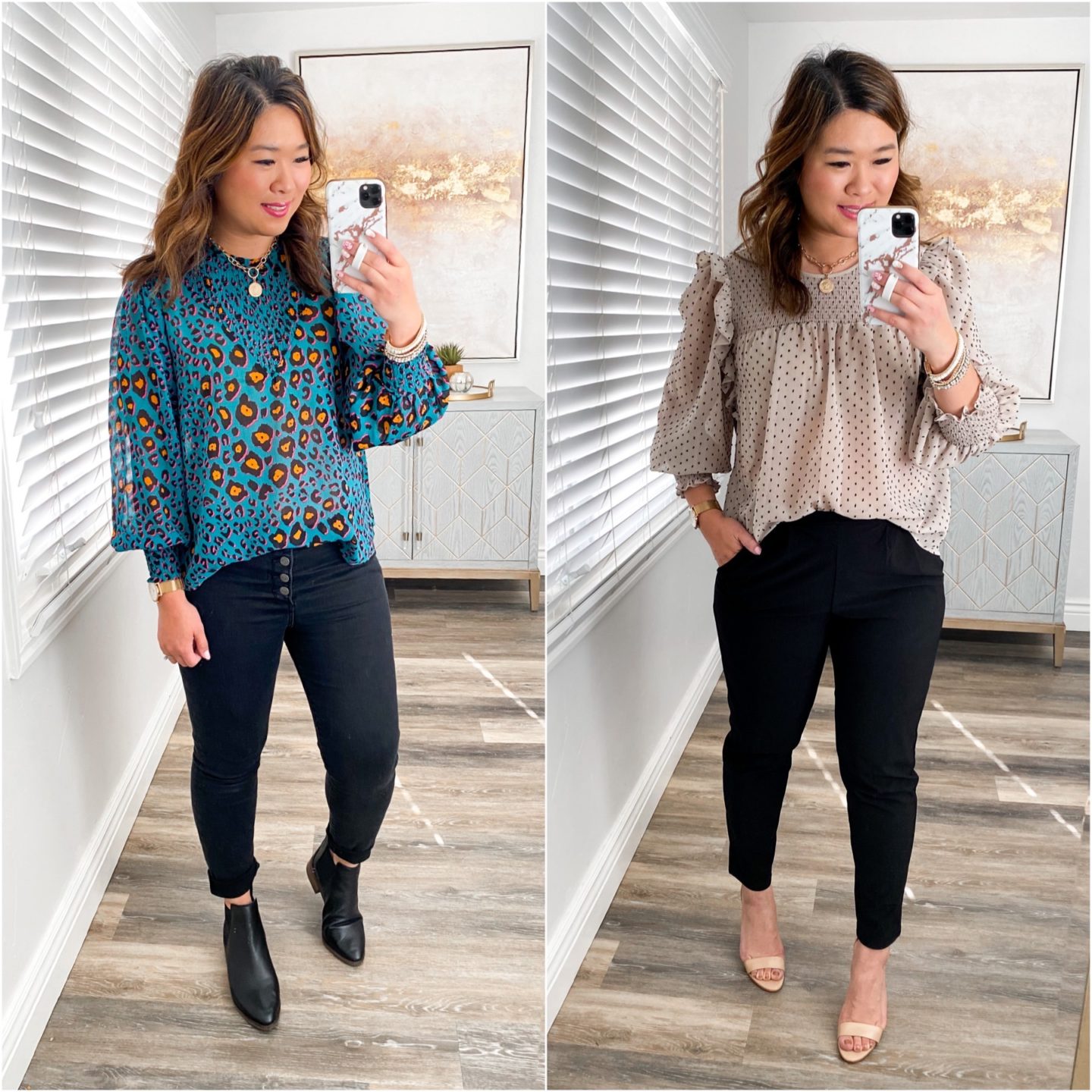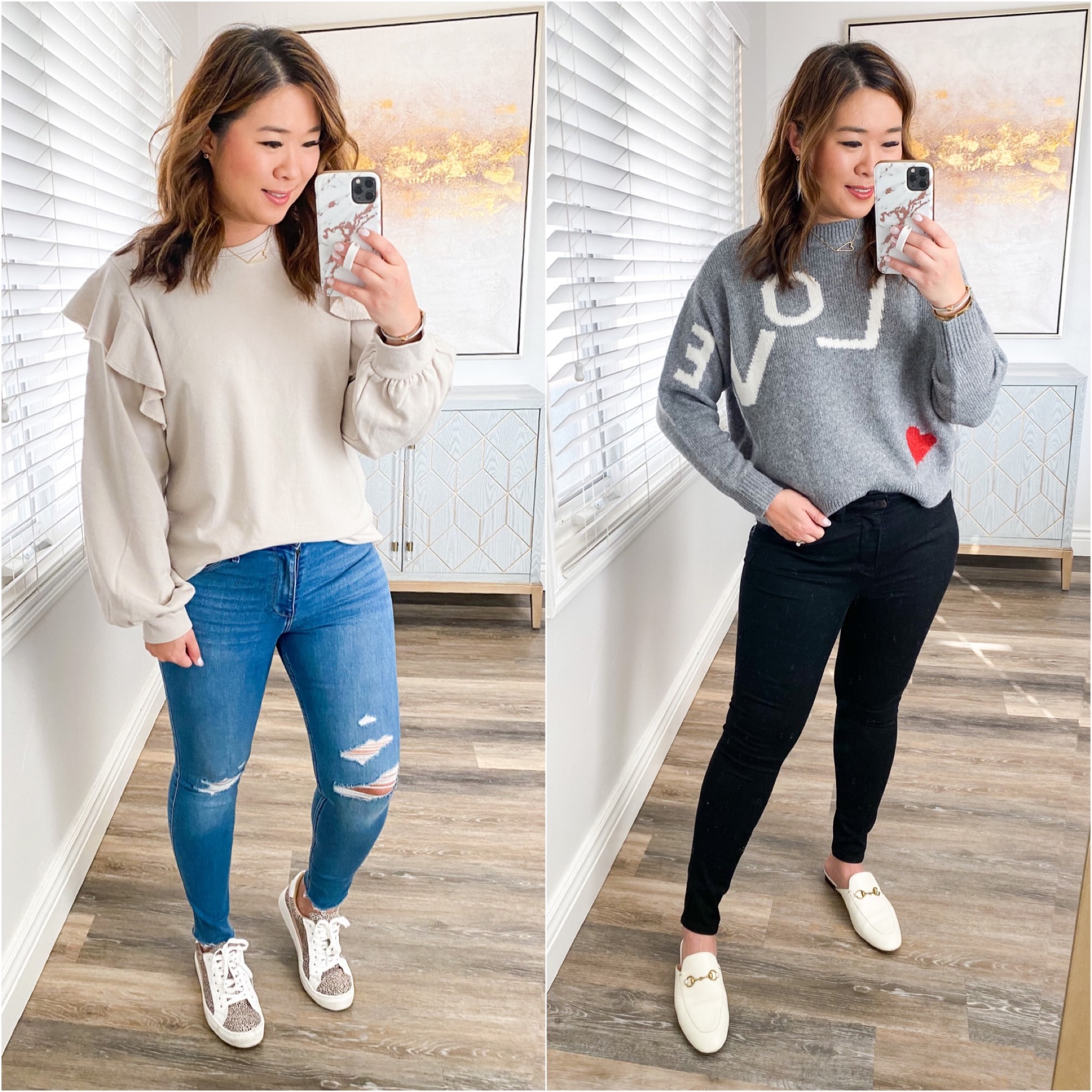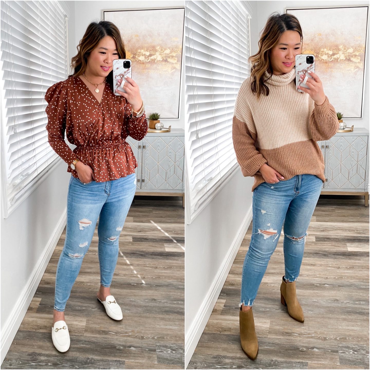 Left Outfit: Top (S) // Jeans (6) // Booties (TTS) // Necklace