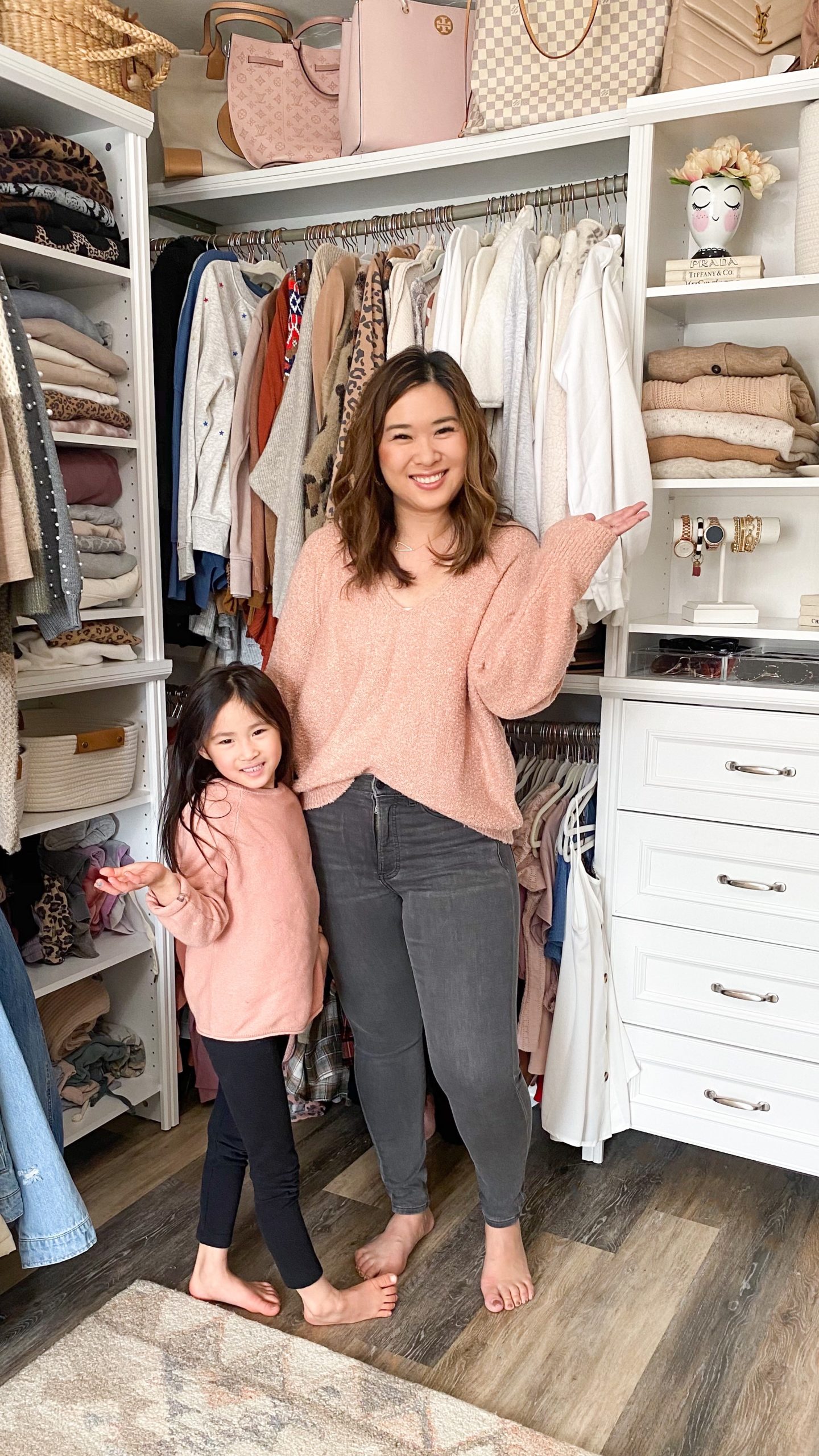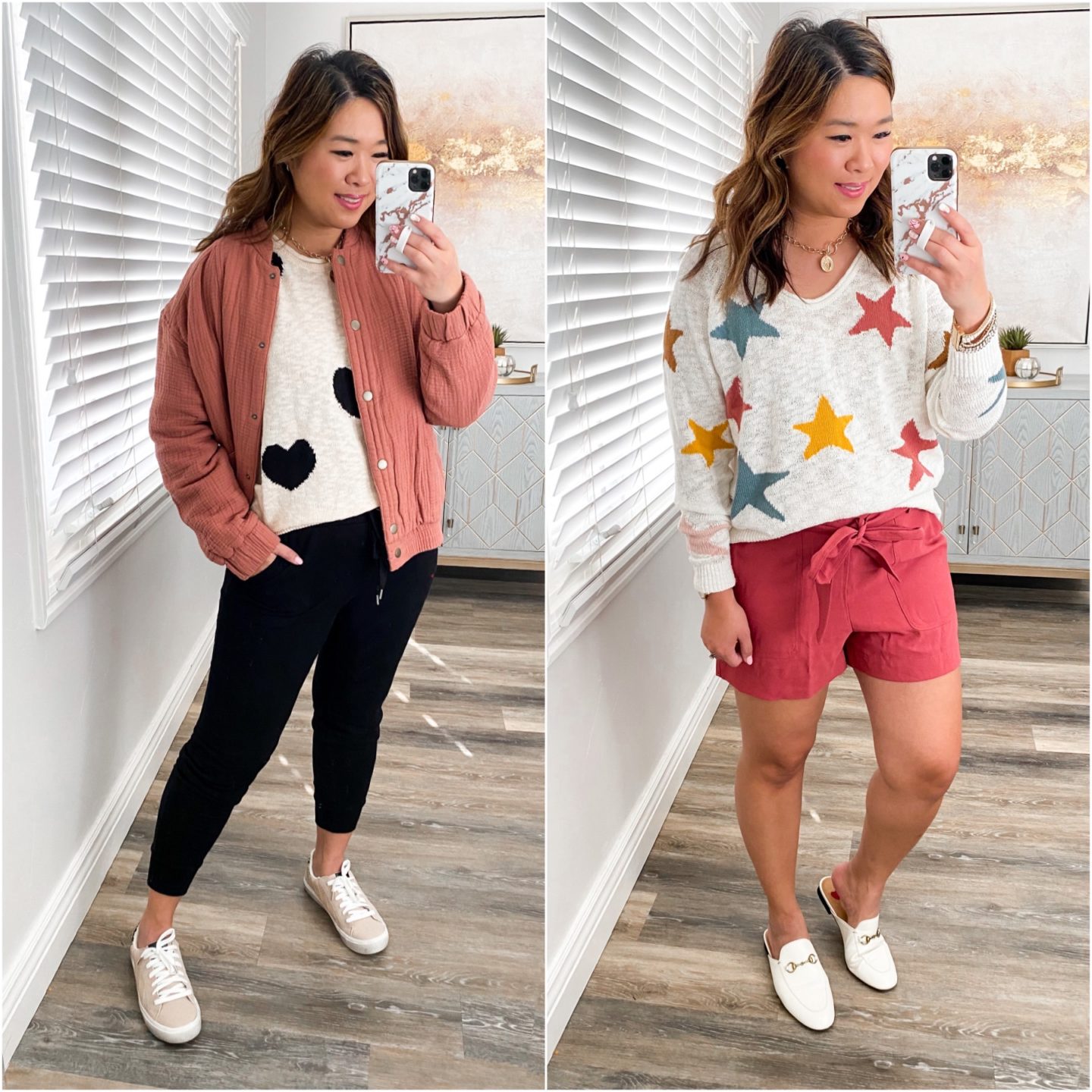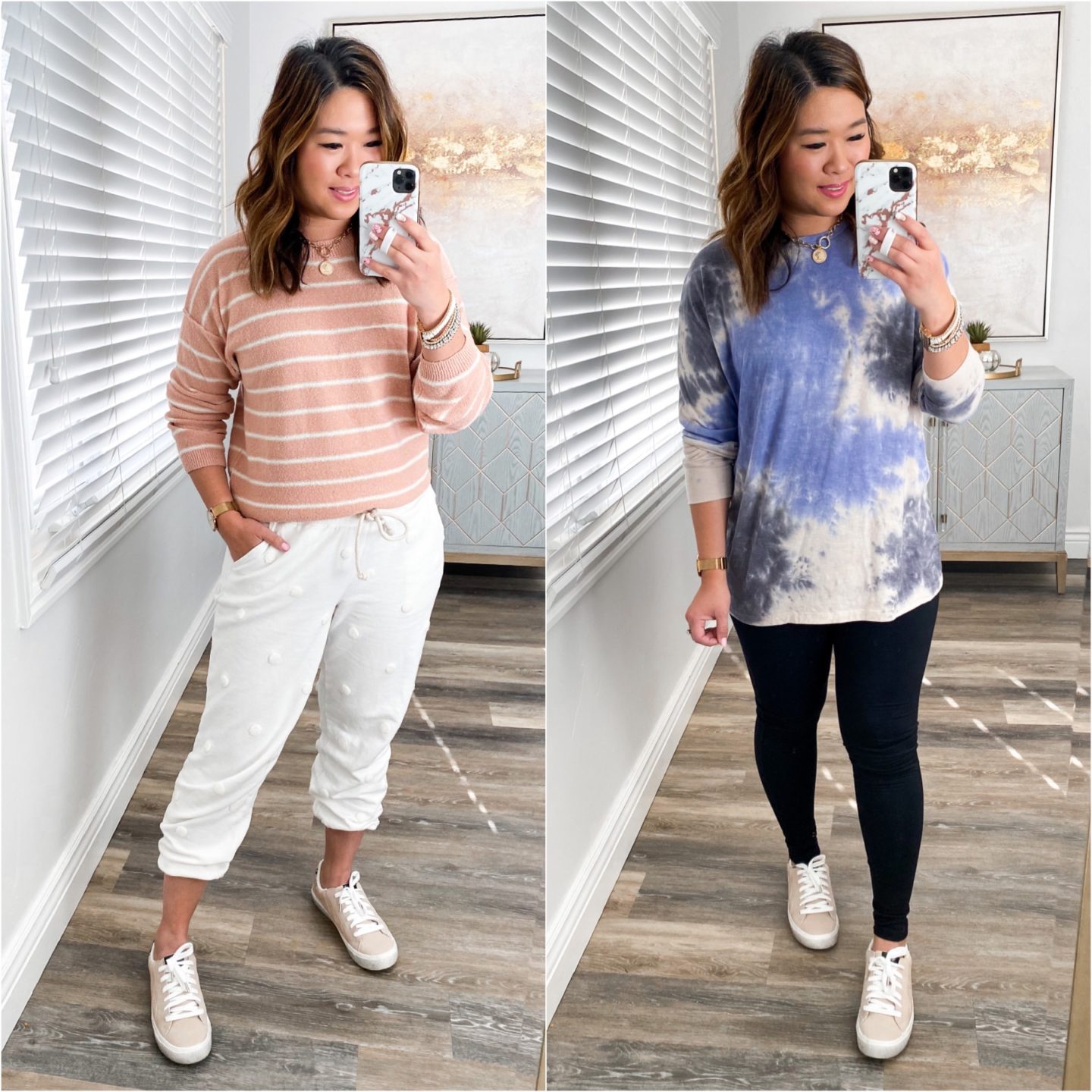 Left Outfit: Sweater (M) // Jeans (6) // Shoes (TTS) // Necklace