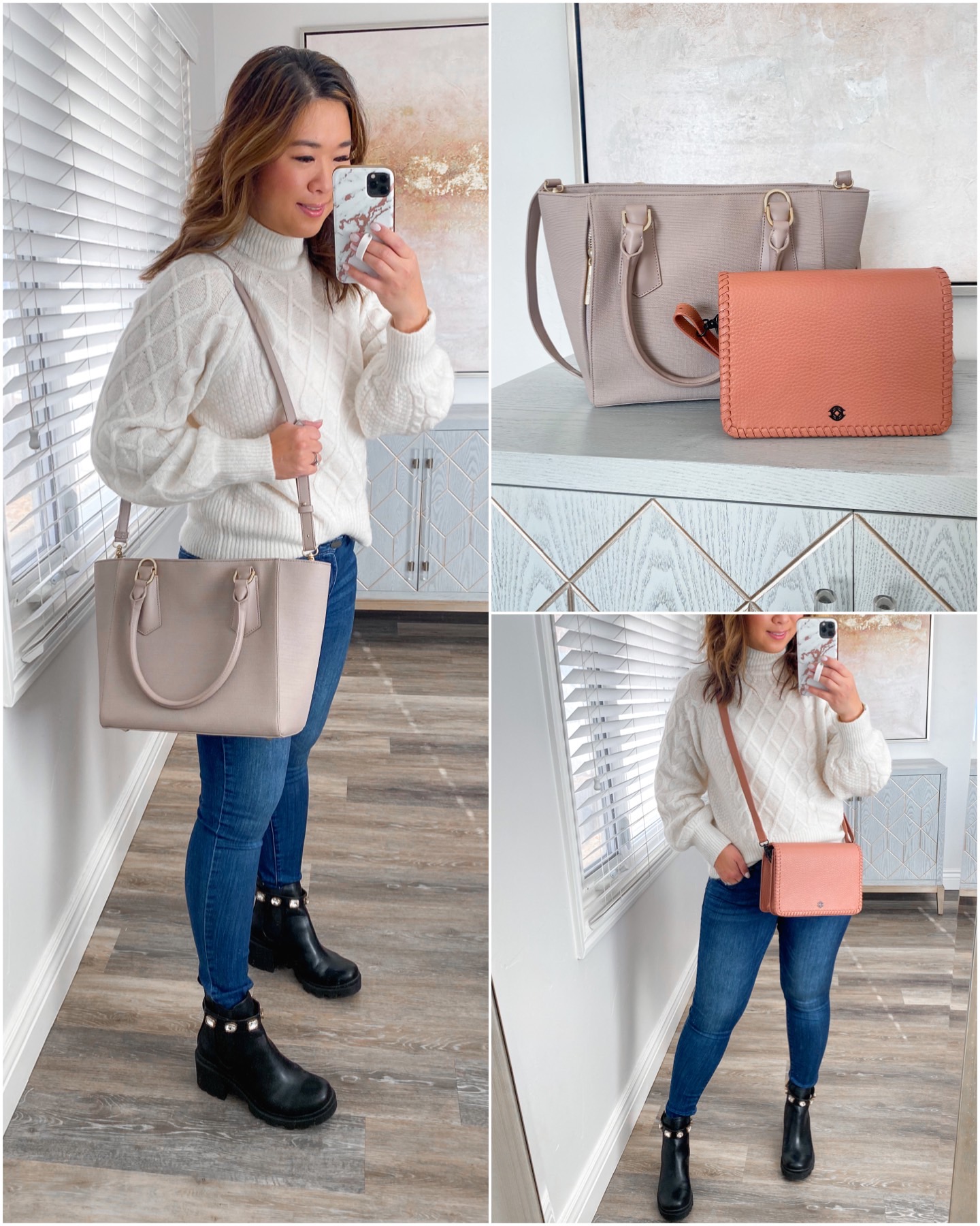 Sweater (M) // Jeans (6) // Boots (TTS) // Pink Purse // Beige Tote