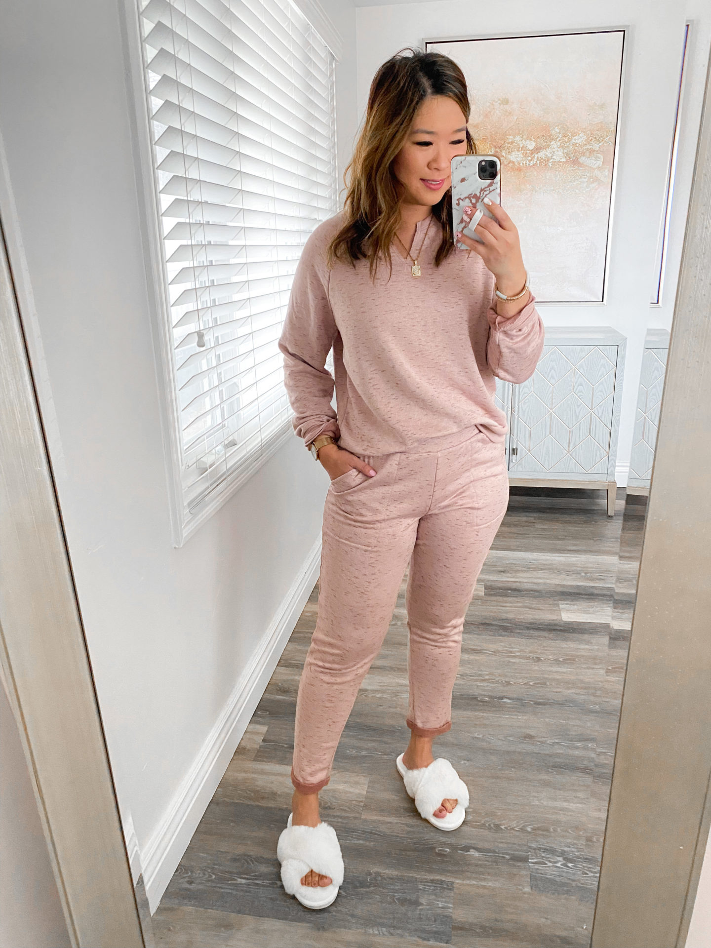 Sweatshirt (M) // Lounge Pants (M) // Slippers