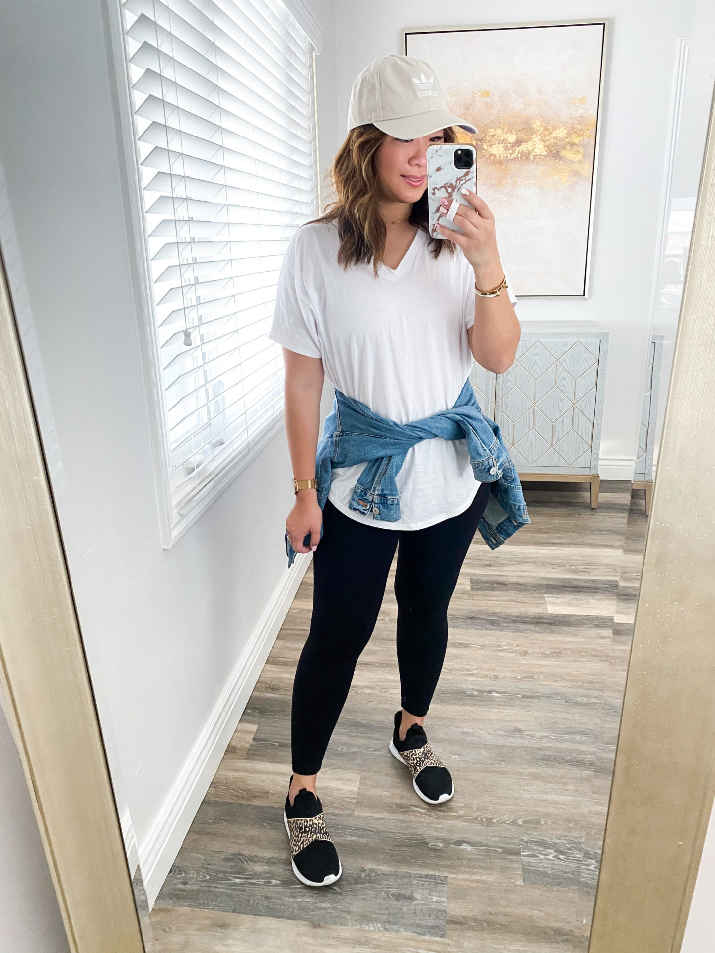 Top (S) // Denim Jacket (M) // Leggings (M) // Shoes (TTS) // Baseball Cap
