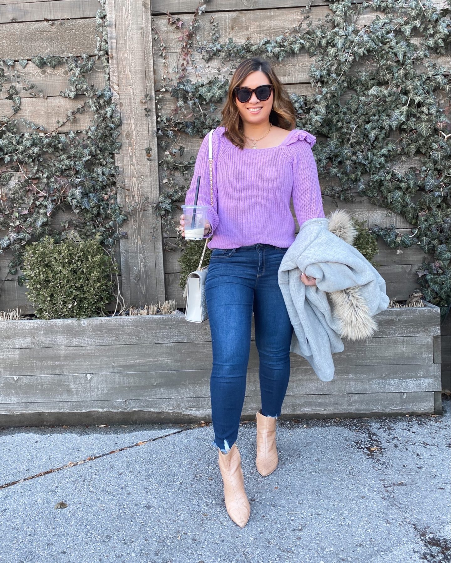 Sweater (M) // Jeans (6) // Booties (TTS) // Coat (8) // Purse // Necklace // Sunglasses