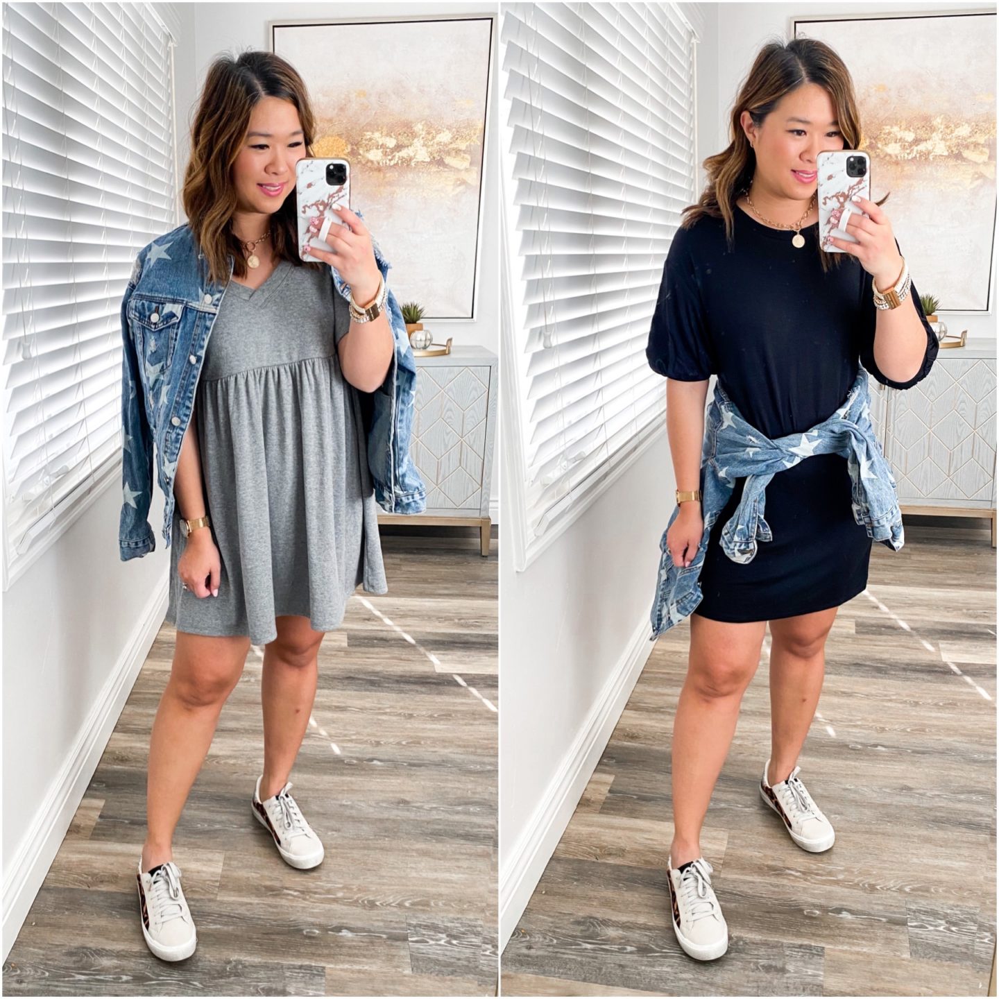 Left Outfit: Dress (S) // Denim Jacket (M) // Shoes (TTS)